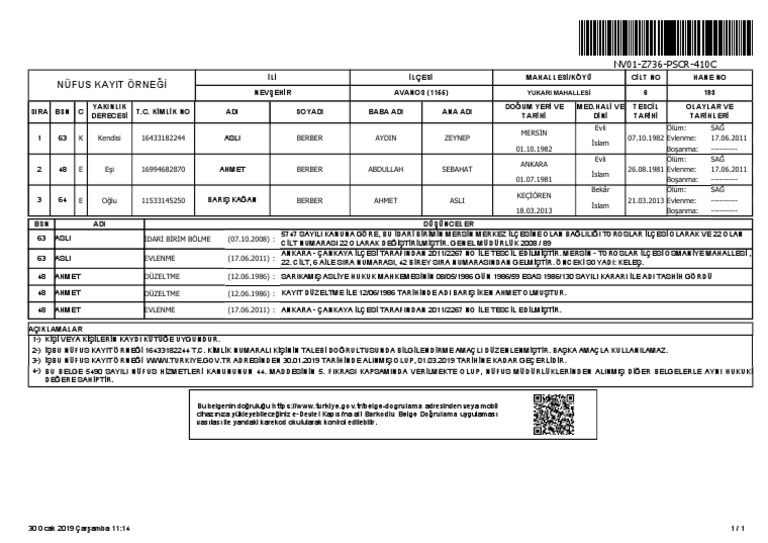 Aile Nüfus Kayıt Örneği Nereden Alınır.