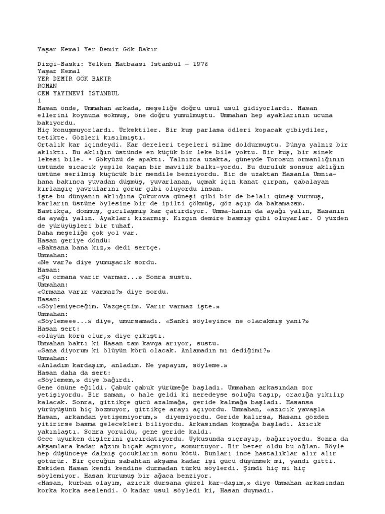 Yer Demir Gök Bakır Kimin Eseri.